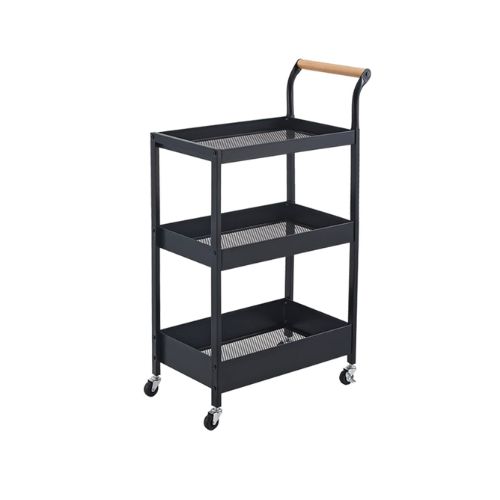 עגלה מתכתית עם 3 קומות וידית עץ – עיצוב מודרני ונייד