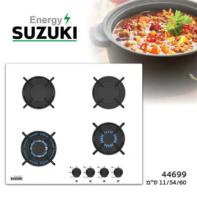 כיריים ארבע להבות G-WHT SZ-604 מזכוכית איכותית דגם 44699 של SUZUKI ENERGY (סוזוקי אנרג’י)