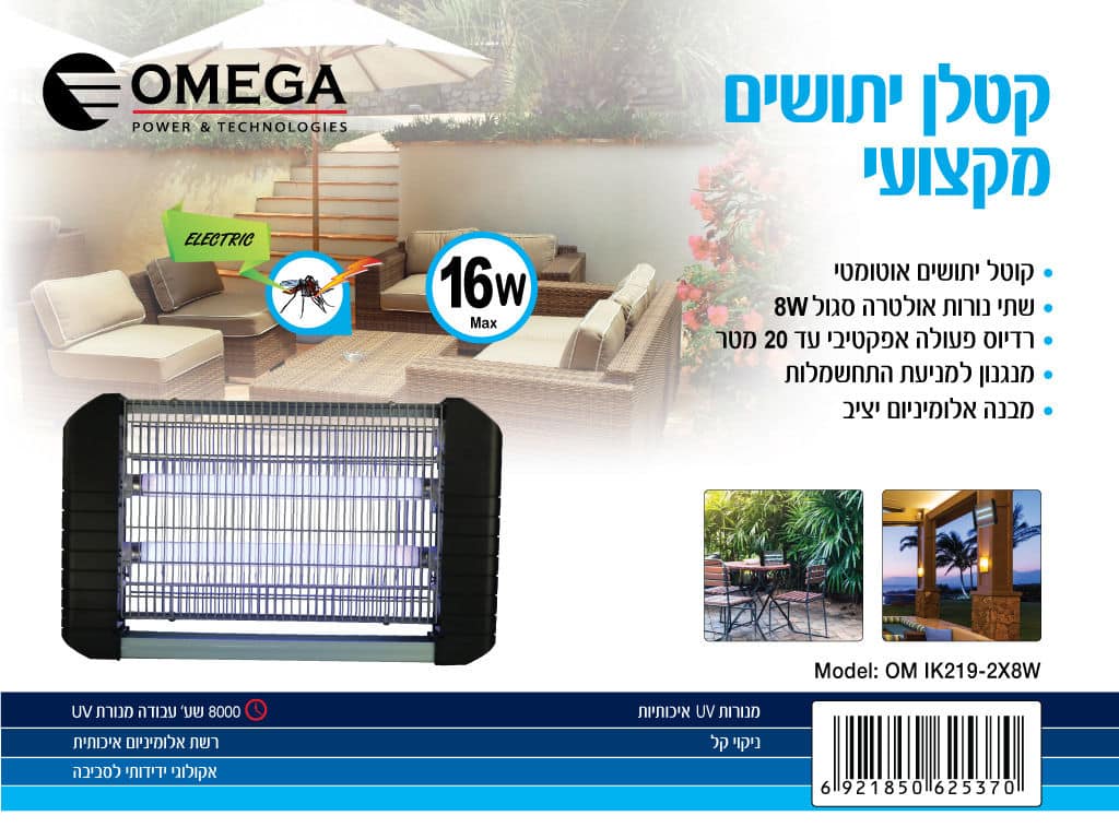 קטלן יתושים אוטומטי, שתי נורות אולטרה סגול 8W, רדיוס פעולה אפקטיבי עד 20 מר’, מנגנון למניעת התחשמלות, מבנה אלומיניום יציב